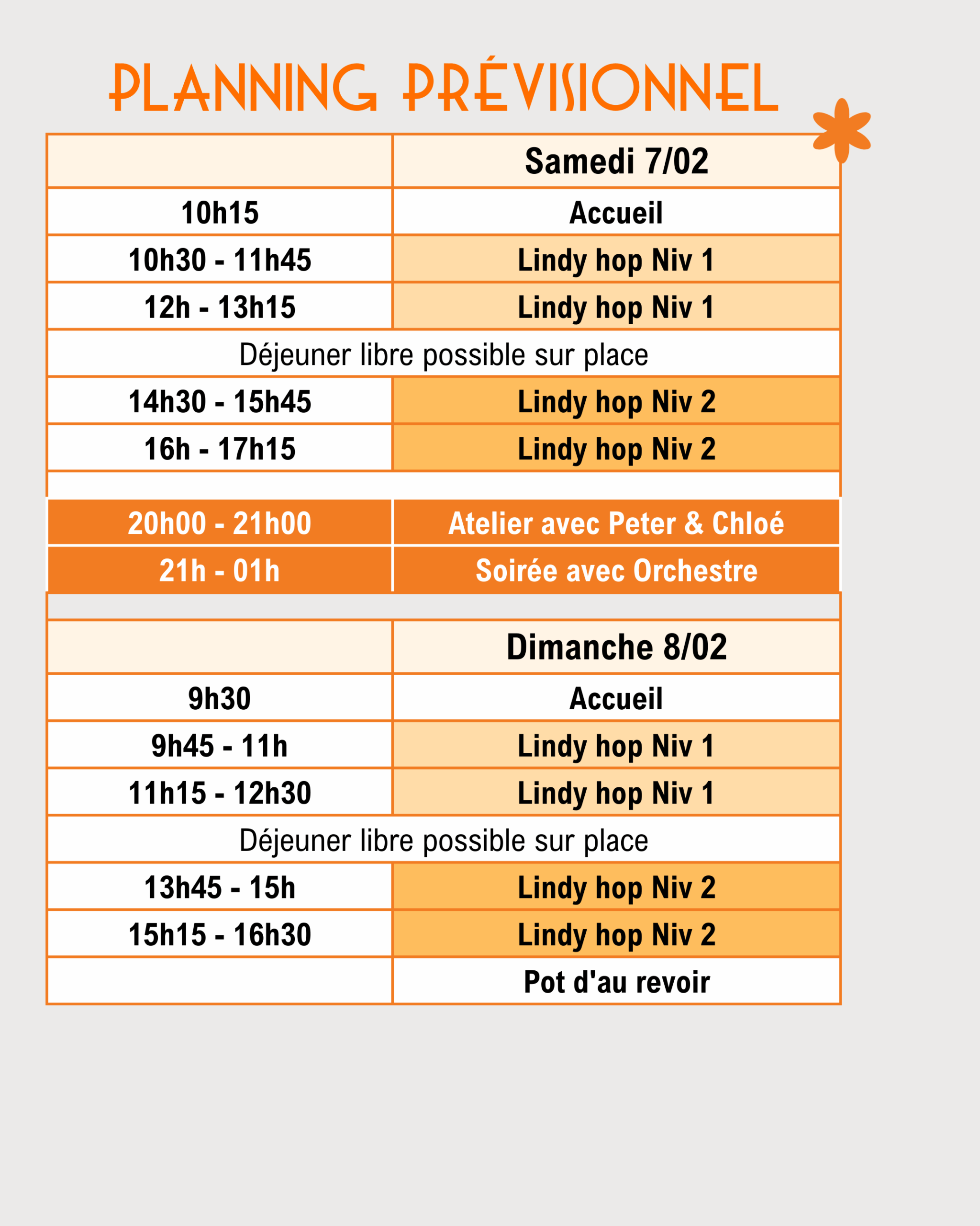 Tu danses régulièrement le Lindy Hop depuis 3 ans ou plus. Tu es à l’aise sur les swing out, les charleston, les groove walk et les tempos moyens/rapides.